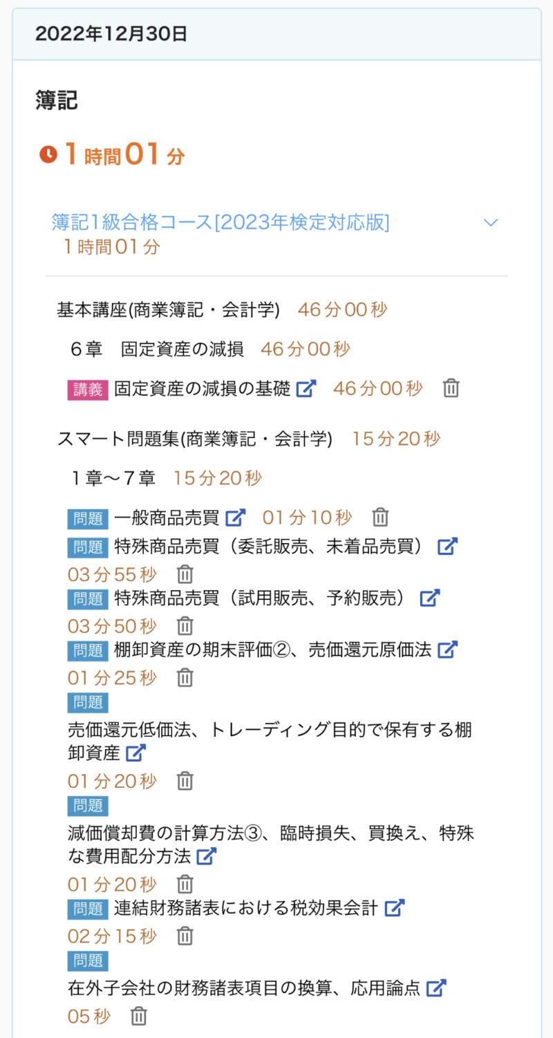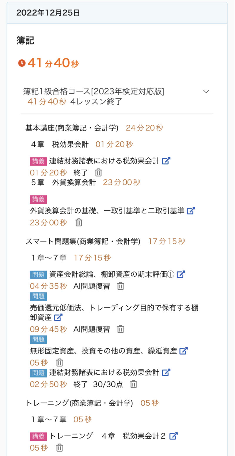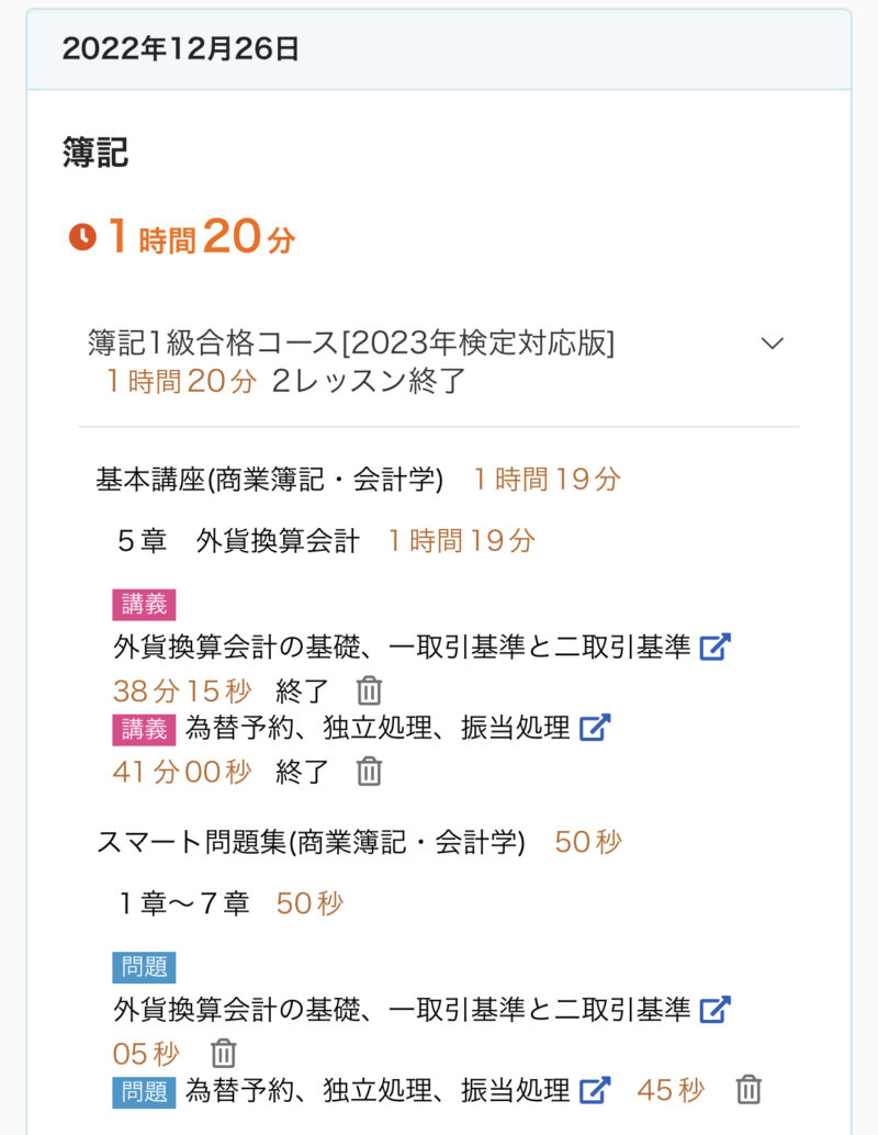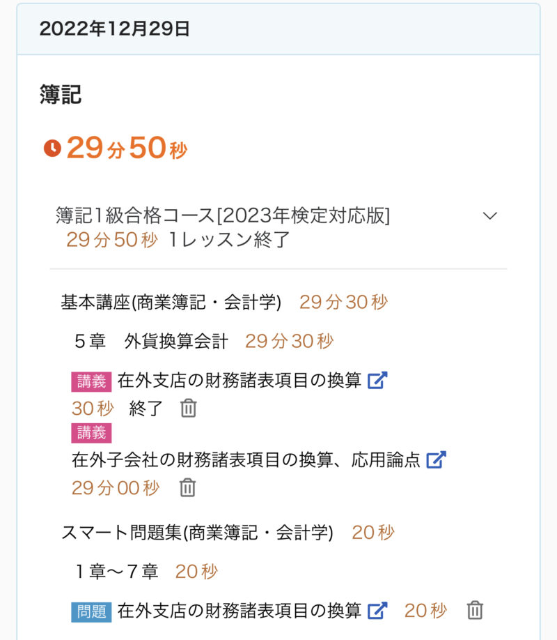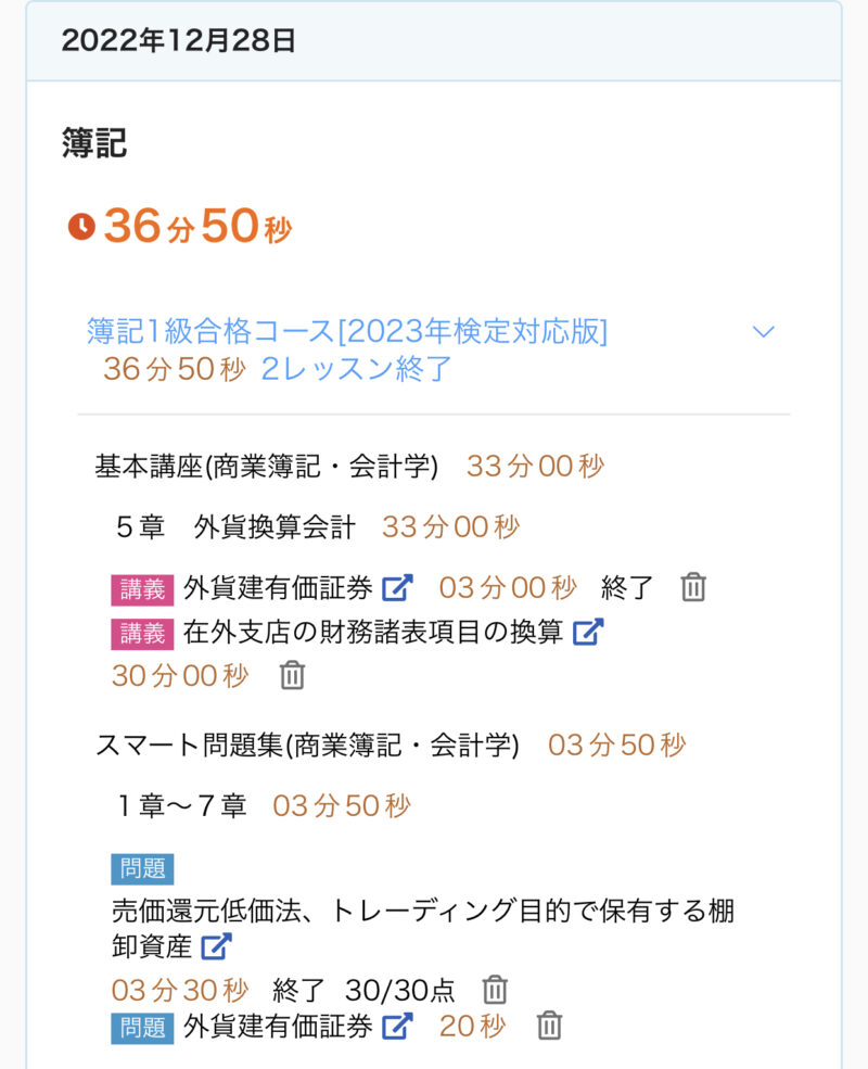 勉強記録 12/25週 簿記1級 Twitter Facebook はてブ Pocket LINE コピー 2023.01.012022.12.25 この記事は約2分で読めます。 こんにちは、『#シャロ勉合宿』中のゆきねこです。 先週末からシャロ勉合宿が始まったので毎日の勉強習慣をますます安定させていこうと意識が高まってます♪ 今週もしっかり進めていきます! 目次 12/25週の進捗12/25(日)12/26(月)12/27(火)12/28(水)12/29(木)12/30(金)12/31(土) 12/25週の進捗 基本講座(商業簿記・会計学) 5章『外貨換算会計』 外貨換算会計の基礎、一取引基準と二取引基準 為替予約、独立処理、振当処理 外貨建有価証券 在外支店の財務諸表項目の換算 在外子会社の財務諸表項目の換算、応用論点 6章 固定資産の減損会計 固定資産の減損の基礎 固定資産の減損(共用資産、のれんがある場合) 12/25(日) 今日(12/25)の簿記1級勉強♪#シャロ勉合宿 2日目5章 外貨換算会計『外貨換算会計の基礎、一取引基準と二取引基準』✅キーワード為替換算為替レート(為替相場)円高、円安外貨換算外貨建金額為替差損益貨幣項目非貨幣項目#簿記1級 #スタディング #勉強 #勉強垢さんと繋がりたい— ゆき🐱@簿記1級受験生 Xmas (@yuki_lovcate) December 25, 2022 12/26(月) 今日(12/26)の簿記1級勉強♪#シャロ勉合宿 3日目5章 外貨換算会計『為替予約、独立処理、振当処理』✅キーワード為替予約直物為替レート(直物為替相場)先物為替レート(先物為替相場)金融派生商品(デリバティブ)独立処理(原則)振当処理(容認)#スタディング #勉強垢さんと繋がりたい— ゆき🐱@簿記1級受験生 Xmas (@yuki_lovcate) December 26, 2022 12/27(火) 今日(12/27)の簿記1級勉強♪#シャロ勉合宿 4日目5章 外貨換算会計『外貨建有価証券』✅キーワード外貨建有価証券売買目的有価証券有価証券評価損益満期保有目的債券為替差損益償却原価有価証券利息子会社株式・関連会社株式#簿記1級 #スタディング #勉強 #勉強垢さんと繋がりたい— ゆき🐱@簿記1級受験生 Xmas (@yuki_lovcate) December 27, 2022 12/28(水) 今日(12/28)の簿記1級勉強♪#シャロ勉合宿 5日目5章 外貨換算会計『在外支店の財務諸表項目の換算』✅キーワード在外支店テンポラル法換算のパラドックス在外支店の財務諸表の換算換算レート(B/S)貨幣項目非貨幣項目#簿記1級 #スタディング #勉強 #勉強垢さんと繋がりたい— ゆき🐱@簿記1級受験生 Xmas (@yuki_lovcate) December 28, 2022 12/29(木) 昨日(12/29)の簿記1級勉強♪#シャロ勉合宿 6日目5章 外貨換算会計『在外子会社の財務諸表項目の換算、応用論点』✅キーワード在外子会社決算日レート法在外子会社の財務諸表の換算手順為替換算調整勘定#簿記1級 #スタディング #勉強 #勉強垢さんと繋がりたい— ゆき🐱@簿記1級受験生 Xmas (@yuki_lovcate) December 29, 2022 12/30(金) 今日(12/30)の簿記1級勉強♪#シャロ勉合宿 7日目6章 固定資産の減損会計『固定資産の減損の基礎』✅キーワード固定資産の減損固定資産の減損処理固定資産の減損処理3STEP減損の兆候の把握資産のグルーピング#簿記1級 #スタディング #勉強 #勉強垢さんと繋がりたい— ゆき🐱@簿記1級受験生 Xmas (@yuki_lovcate) December 30, 2022 12/31(土) 今日(12/31)の簿記1級勉強♪#シャロ勉合宿 8日目6章 固定資産の減損会計『固定資産の減損(共用資産、のれんがある場合)』✅キーワード共用資産共用資産がある場合の減損処理(原則的な処理)共用資産がある場合の減損処理(容認処理)#簿記1級 #スタディング #勉強 #勉強垢さんと繋がりたい— ゆき🐱@簿記1級受験生 Xmas (@yuki_lovcate) December 31, 2022
