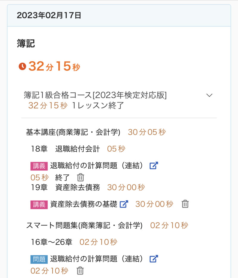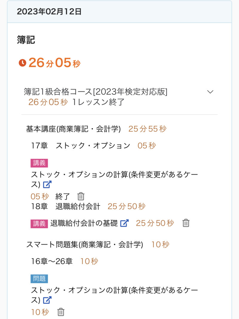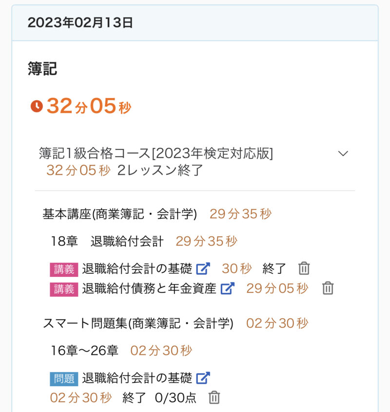 勉強記録 02/12週 簿記1級 Twitter Facebook はてブ Pocket LINE コピー 2023.02.192023.02.12 この記事は約2分で読めます。 こんにちは、ゆきねこです。 あったかかったり寒かったり、寒暖差が激しいので体調崩さないように気をつけましょう! 今週もしっかり進めていきます♪ 目次 02/12週の進捗02/12(日)02/13(月)02/14(火)02/15(水)02/16(木)02/17(金)02/18(土) 02/12週の進捗 18章『退職給付会計』 退職給付会計の基礎 退職給付債務と年金資産 数理計算上の差異 退職給付の計算問題(個別) 退職給付の計算問題(連結) 19章『資産除去債務』 資産除去債務の基礎 資産除去債務(見積りの変更) 02/12(日) 今日(2/12)の簿記1級勉強♪17章 退職給付会計『退職給付会計の基礎』✅キーワード退職給付会計外部拠出の退職給付制度退職給付会計の基本退職給付引当金の額の算定退職給付会計の個別上と連結上の取り扱いの違い#簿記1級 #スタディング #勉強 #勉強垢さんと繋がりたい— ゆき🐱@簿記1級受験生 (@yuki_lovcate) February 12, 2023 02/13(月) 今日(2/13)の簿記1級勉強♪18章 退職給付会計『退職給付債務と年金資産』✅キーワード退職給付債務勤務費用期間定額基準利息費用年金資産期待運用収益用語略称#簿記1級 #スタディング #勉強 #勉強垢さんと繋がりたい— ゆき🐱@簿記1級受験生 (@yuki_lovcate) February 13, 2023 02/14(火) 今日(2/14)の簿記1級勉強♪18章 退職給付会計『数理計算上の差異』✅キーワード数理計算上の差異数理計算上の差異の会計処理(個別上の処理)過去勤務費用#簿記1級 #スタディング #勉強 #勉強垢さんと繋がりたい— ゆき🐱@簿記1級受験生 (@yuki_lovcate) February 14, 2023 02/15(水) 今日(2/15)の簿記1級勉強♪18章 退職給付会計『退職給付の計算問題(個別)』✅キーワード退職給付会計の計算問題の解き方#簿記1級 #スタディング #勉強 #勉強垢さんと繋がりたい— ゆき🐱@簿記1級受験生 (@yuki_lovcate) February 15, 2023 02/16(木) 今日(2/16)の簿記1級勉強♪18章 退職給付会計『退職給付の計算問題(連結)』✅キーワード連結上の退職給付会計下書きの考え方#簿記1級 #スタディング #勉強 #勉強垢さんと繋がりたい— ゆき🐱@簿記1級受験生 (@yuki_lovcate) February 16, 2023 02/17(金) 今日(2/17)の簿記1級勉強♪19章 資産除去債務『資産除去債務の基礎』✅キーワード資産除去債務資産除去債務の会計処理#簿記1級 #スタディング #勉強 #勉強垢さんと繋がりたい— ゆき🐱@簿記1級受験生 (@yuki_lovcate) February 17, 2023 02/18(土) 今日(2/18)の簿記1級勉強♪19章 資産除去債務『資産除去債務(見積りの変更)』✅キーワード資産除去債務の会計処理(見積りの変更が生じた場合)#簿記1級 #スタディング #勉強 #勉強垢さんと繋がりたい— ゆき🐱@簿記1級受験生 (@yuki_lovcate) February 18, 2023