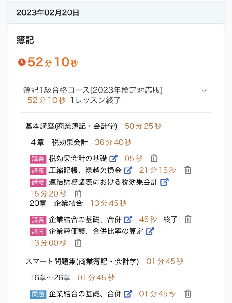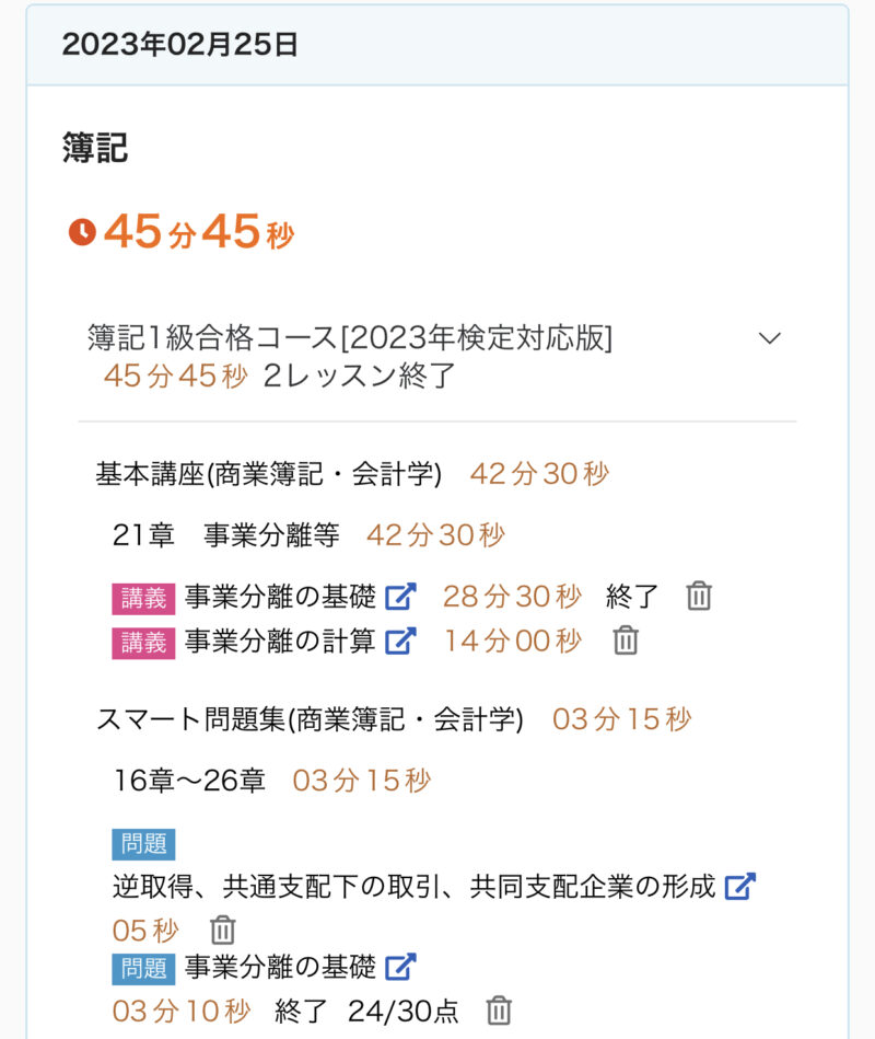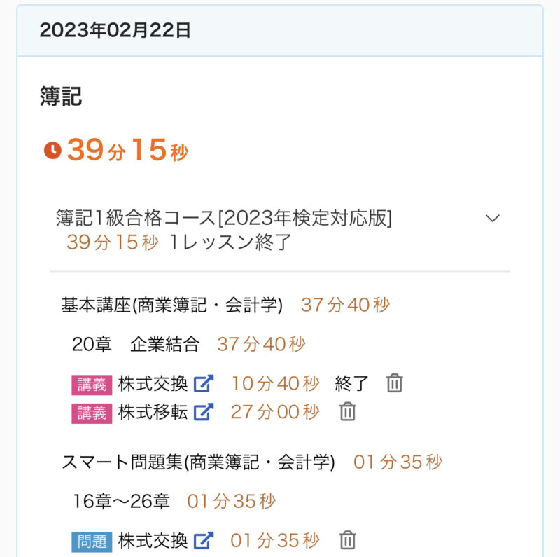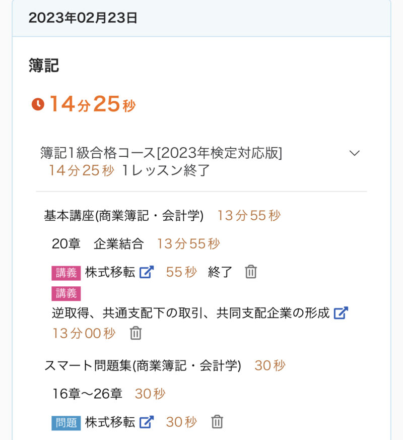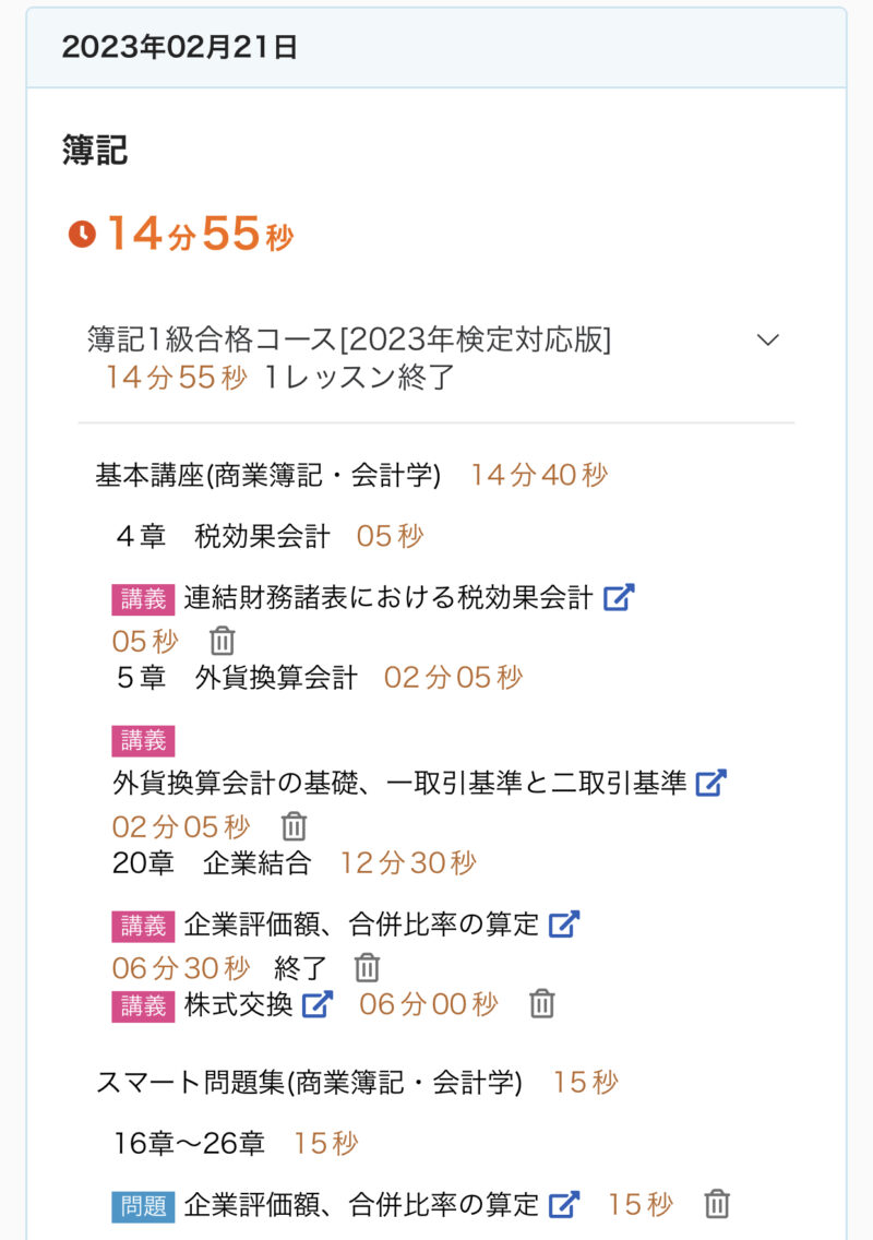勉強記録 02/19週 簿記1級 Twitter Facebook はてブ Pocket LINE コピー 2023.02.262023.02.19 この記事は約2分で読めます。 こんにちは、ゆきねこです。 もう2月も半分以上過ぎちゃいましたね。時間が経つのが早く感じます。 このままだとあっという間に試験の日が来そうです。 がんばらないと〜♪ 目次 02/19週の進捗02/19(日)02/20(月)02/21(火)02/22(水)02/23(木)02/24(金)02/25(土) 02/19週の進捗 20章『企業結合』 企業結合の基礎、合併 企業評価額、合併比率の算定 株式交換 株式移転 逆取得、共通支配下の取引、共同支配企業の形成 21章『事業分離等』 事業分離の基礎 事業分離の計算 02/19(日) 今日(2/19)の簿記1級勉強♪20章 企業結合『企業結合の基礎、合併』✅キーワード企業結合組織再編の類型企業結合の会計処理の基本(パーチェス法)パーチェス法の会計処理合併負ののれんの会計処理合併相殺仕訳#簿記1級 #スタディング #勉強 #勉強垢さんと繋がりたい— ゆき🐱@簿記1級受験生 (@yuki_lovcate) February 19, 2023 02/20(月) 今日(2/19)の簿記1級勉強♪20章 企業結合『企業評価額、合併比率の算定』✅キーワード合併における企業評価額の算定企業評価額の算定合併比率の算定交付株式数の決定#簿記1級 #スタディング #勉強 #勉強垢さんと繋がりたい— ゆき🐱@簿記1級受験生 (@yuki_lovcate) February 20, 2023 02/21(火) 今日(2/21)の簿記1級勉強♪20章 企業結合『株式交換』✅キーワード株式交換(個別上の処理)株式交換(連結上の処理)対価として自己株式を処分した場合(個別上の処理)#簿記1級 #スタディング #勉強 #勉強垢さんと繋がりたい— ゆき🐱@簿記1級受験生 (@yuki_lovcate) February 21, 2023 02/22(水) 今日(2/22)の簿記1級勉強♪20章 企業結合『株式移転』✅キーワード株式移転(個別上の処理)株式移転(連結上の処理)#簿記1級 #スタディング #勉強 #勉強垢さんと繋がりたい— ゆき🐱@簿記1級受験生 (@yuki_lovcate) February 22, 2023 02/23(木) 今日(2/23)の簿記1級勉強♪20章 企業結合『逆取得、共通支配下の取引、共同支配企業の形成』✅キーワード逆取得共通支配下の取引共同支配企業の形成#簿記1級 #スタディング #勉強 #勉強垢さんと繋がりたい— ゆき🐱@簿記1級受験生 (@yuki_lovcate) February 23, 2023 02/24(金) 今日(2/24)の簿記1級勉強♪21章 事業分離等『事業分離の基礎』✅キーワード事業分離事業分離における考え方分離元企業と分離先企業#簿記1級 #スタディング #勉強 #勉強垢さんと繋がりたい— ゆき🐱@簿記1級受験生 (@yuki_lovcate) February 24, 2023 02/25(土) 今日(2/25)の簿記1級勉強♪21章 事業分離等『事業分離の計算』✅キーワード–#簿記1級 #スタディング #勉強 #勉強垢さんと繋がりたい— ゆき🐱@簿記1級受験生 (@yuki_lovcate) February 25, 2023