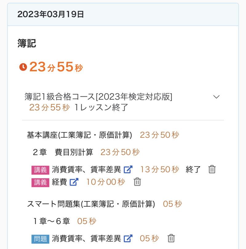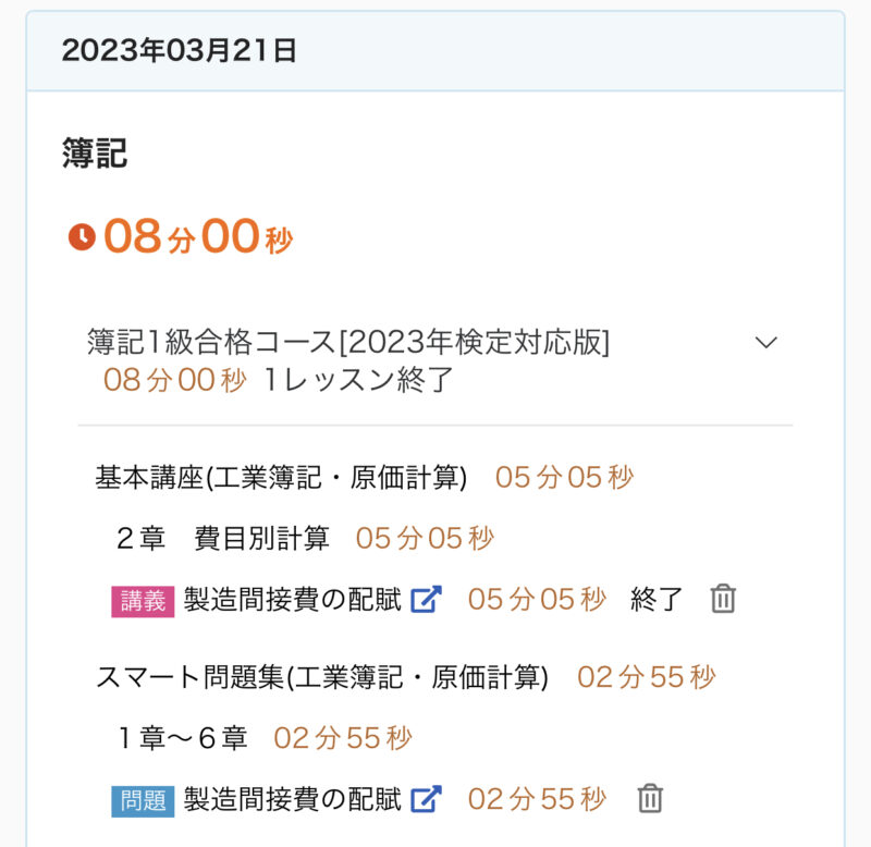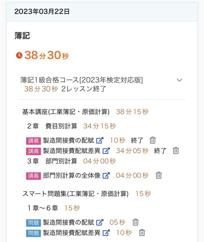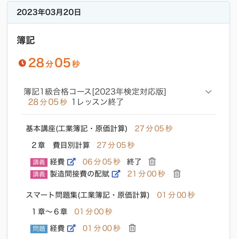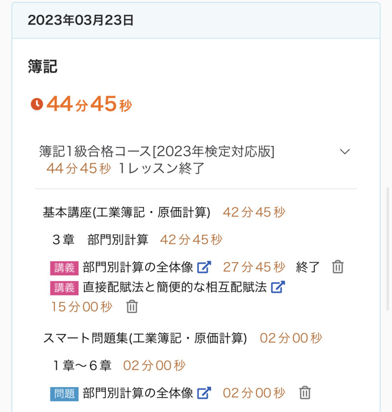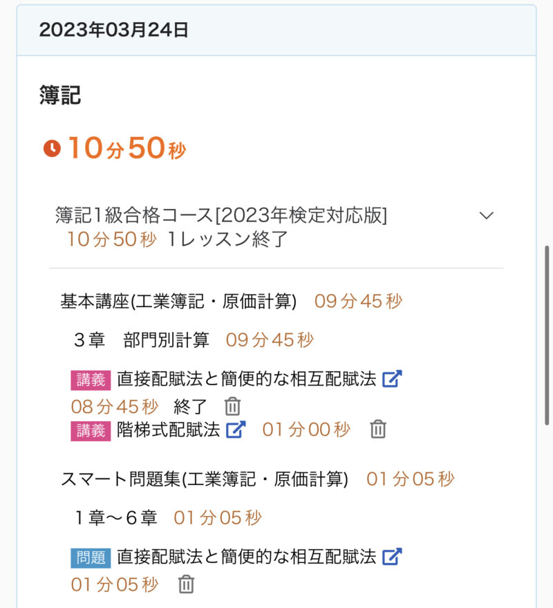 勉強記録 03/19週 簿記1級 Twitter Facebook はてブ Pocket LINE コピー 2023.03.262023.03.19 この記事は約2分で読めます。 こんにちは、ゆきねこです。 先週から工業簿記・原価計算を開始しました! 今のところ順調です♪ まだ基礎で2級の復習みたいな感じです。 今週もしっかり進めていきます♬ 目次 03/19週の進捗03/19(日)03/20(月)03/21(火)03/22(水)03/23(木)03/24(金)03/25(土) 03/19週の進捗 2章『費目別計算(経費会計)』 経費 2章『費目別計算(製造間接費)』 製造間接費の配賦 製造間接費配賦差異 3章『部門別計算(補助部門費の配賦①)』 直接配賦法と簡便的な相互配賦法 部門別計算の全体像 3章『部門別計算(補助部門費の配賦②)』 階梯式配賦法 相互配布法(連立方程式法) 03/19(日) 今日(3/19)の簿記1級勉強♪2章 費目別計算(経費会計)『経費』✅キーワード🌙経費🌙経費の分類⭐️製品との関連における分類⭐️さらに細かい分類🌙外注加工賃の処理⭐️加工品を直ちに製造現場に投入する場合⭐️加工品をいったん部品として扱う場合#簿記1級 #スタディング #勉強— ゆき🐱@簿記1級受験生 (@yuki_lovcate) March 19, 2023 03/20(月) 今日(3/20)の簿記1級勉強♪2章 費目別計算(製造間接費)『製造間接費の配賦』✅キーワード🌙製造間接費の配賦⭐️配賦基準⭐️実際配賦と予定配賦🌙製造間接費の実際配賦⭐️実際配賦率⭐️実際配賦額⭐️勘定記入#簿記1級 #スタディング #勉強 #勉強垢さんと繋がりたい— ゆき🐱@簿記1級受験生 (@yuki_lovcate) March 20, 2023 03/21(火) 昨日(3/21)分の簿記1級勉強♪2章 費目別計算(製造間接費)『製造間接費配賦差異』✅キーワード🌙製造間接費配賦差異🌙配賦差異の分析⭐️固定予算における配賦差異の分析⭐️変動予算における配賦差異の分析#簿記1級 #スタディング #勉強 #勉強垢さんと繋がりたい— ゆき🐱@簿記1級受験生 (@yuki_lovcate) March 22, 2023 03/22(水) 今日(3/22)の簿記1級勉強♪3章 部門別計算(補助部門費の配賦①)『部門別計算の全体像』✅キーワード🌙原価の部門別計算🌙部門別計算の目的🌙部門の種類🌙部門別計算の手続⭐️第1次集計⭐️第2次集計⭐️製造部門費の製品への配賦#簿記1級 #スタディング #勉強 #勉強垢さんと繋がりたい— ゆき🐱@簿記1級受験生 (@yuki_lovcate) March 22, 2023 03/23(木) 今日(3/23)の簿記1級勉強♪3章 部門別計算(補助部門費の配賦①)『直接配賦法と簡便的な相互配賦法』✅キーワード🌙直接配賦法🌙補助部門費の配賦基準🌙相互配賦法(簡便的な方法)⭐️簡便的な方法#簿記1級 #スタディング #勉強 #勉強垢さんと繋がりたい— ゆき🐱@簿記1級受験生 (@yuki_lovcate) March 23, 2023 03/24(金) 今日(3/24)の簿記1級勉強♪3章 部門別計算(補助部門費の配賦②)『階梯式配賦法』✅キーワード🌙階梯式配賦法⭐️補助部門の順位付けの方法⭐️補助部門費の配賦⭐️部門費配賦表#簿記1級 #スタディング #勉強 #勉強垢さんと繋がりたい— ゆき🐱@簿記1級受験生 (@yuki_lovcate) March 24, 2023 03/25(土) 今日(3/25)の簿記1級勉強♪3章 部門別計算(補助部門費の配賦②)『相互配賦法(連立方程式法)』✅キーワード🌙相互配賦法(連立方程式法)⭐️連立方程式法⭐️部門費配賦表#簿記1級 #スタディング #勉強 #勉強垢さんと繋がりたい— ゆき🐱@簿記1級受験生 (@yuki_lovcate) March 25, 2023