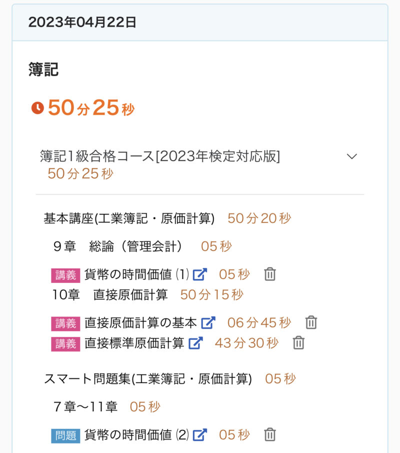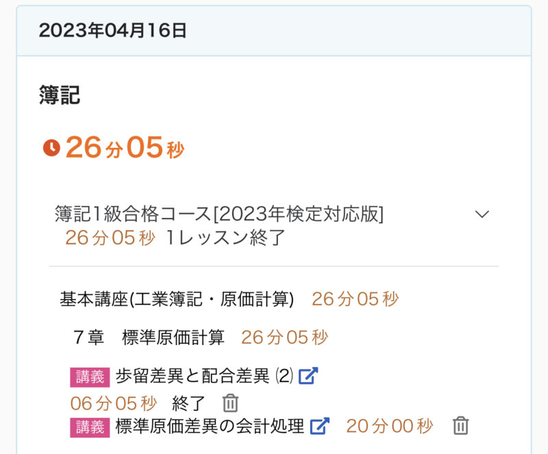 勉強記録 04/16週 簿記1級 Twitter Facebook はてブ Pocket LINE コピー 2023.04.232023.04.16 この記事は約2分で読めます。 こんにちは、ゆきねこです。 試験まであと2ヶ月切りました。そろそろラストスパートしないととは思ってるんですけど、まだ気合いが足りなくてサボり気味です。 だけど今回は毎日少しずつでもちゃんと継続出来てるから自分を褒めてあげたい!しっかりTwitterも毎日更新してるし! 今週もこの調子で進めていきます♪ 目次 04/16週の進捗04/16(日)04/17(月)04/18(火)04/19(水)04/20(木)04/21(金)04/22(土) 04/16週の進捗 7章『標準原価計算(標準原価差異の会計処理)』 標準原価差異の会計処理 8章『本社工場会計』 本社工場会計 9章『総論 管理会計』 管理会計 総論 貨幣の時間価値(1) 貨幣の時間価値(2) 10章『直接原価計算』 直接原価計算の基本 直接標準原価計算 04/16(日) 今日(4/16)の簿記1級勉強♪7章 標準原価計算(標準原価差異の会計処理)『標準原価差異の会計処理』✅キーワード🌙標準原価差異の会計処理⭐️正常な標準原価差異の会計処理の全体像🌙材料受入価格差異の会計処理#簿記1級 #スタディング #勉強 #勉強垢さんと繋がりたい— ゆき🐱@簿記1級受験生 (@yuki_lovcate) April 16, 2023 04/17(月) 今日(4/17)の簿記1級勉強♪8章 本社工場会計『本社工場会計』✅キーワード🌙本社工場会計⭐️本社勘定と工場勘定⭐️振替価格🌙本社工場会計の勘定記入⭐️①総合損益勘定を用いる場合⭐️②月次損益勘定を用いる場合#簿記1級 #スタディング #勉強 #勉強垢さんと繋がりたい— ゆき🐱@簿記1級受験生 (@yuki_lovcate) April 17, 2023 04/18(火) 今日(4/18)の簿記1級勉強♪9章 総論(管理会計)『管理会計 総論』✅キーワード🌙管理会計目的の原価計算⭐️財務会計目的の原価計算⭐️管理会計目的の原価計算🌙原価管理と利益管理の概要⭐️管理に適した原価計算の方法#簿記1級 #スタディング #勉強 #勉強垢さんと繋がりたい— ゆき🐱@簿記1級受験生 (@yuki_lovcate) April 18, 2023 04/19(水) 今日(4/19)の簿記1級勉強♪9章 総論(管理会計)『貨幣の時間価値(1)』✅キーワード🌙貨幣の時間価値⭐️割引現在価値計算の基本的な考え方🌙複利計算と割引計算⭐️複利計算⭐️割引計算#簿記1級 #スタディング #勉強 #勉強垢さんと繋がりたい— ゆき🐱@簿記1級受験生 (@yuki_lovcate) April 19, 2023 04/20(木) 今日(4/20)の簿記1級勉強♪9章 総論(管理会計)『貨幣の時間価値(2)』✅キーワード🌙現価係数🌙年金現価係数#簿記1級 #スタディング #勉強 #勉強垢さんと繋がりたい— ゆき🐱@簿記1級受験生 (@yuki_lovcate) April 20, 2023 04/21(金) 今日(4/21)の簿記1級勉強♪10章 直接原価計算『直接原価計算の基本』✅キーワード🌙直接原価計算による損益計算⭐️直接原価計算と全部原価計算の比較🌙固定費調整⭐️固定費調整の具体的な計算⭐️固定費調整の表示#簿記1級 #スタディング #勉強 #勉強垢さんと繋がりたい— ゆき🐱@簿記1級受験生 (@yuki_lovcate) April 21, 2023 04/22(土) 今日(4/22)の簿記1級勉強♪10章 直接原価計算『直接標準原価計算』✅キーワード🌙直接標準原価計算の基本⭐️直接標準原価計算での標準原価差異⭐️直接標準原価計算による損益計算書🌙標準原価差異分析と固定費調整#簿記1級 #スタディング #勉強 #勉強垢さんと繋がりたい— ゆき🐱@簿記1級受験生 (@yuki_lovcate) April 22, 2023